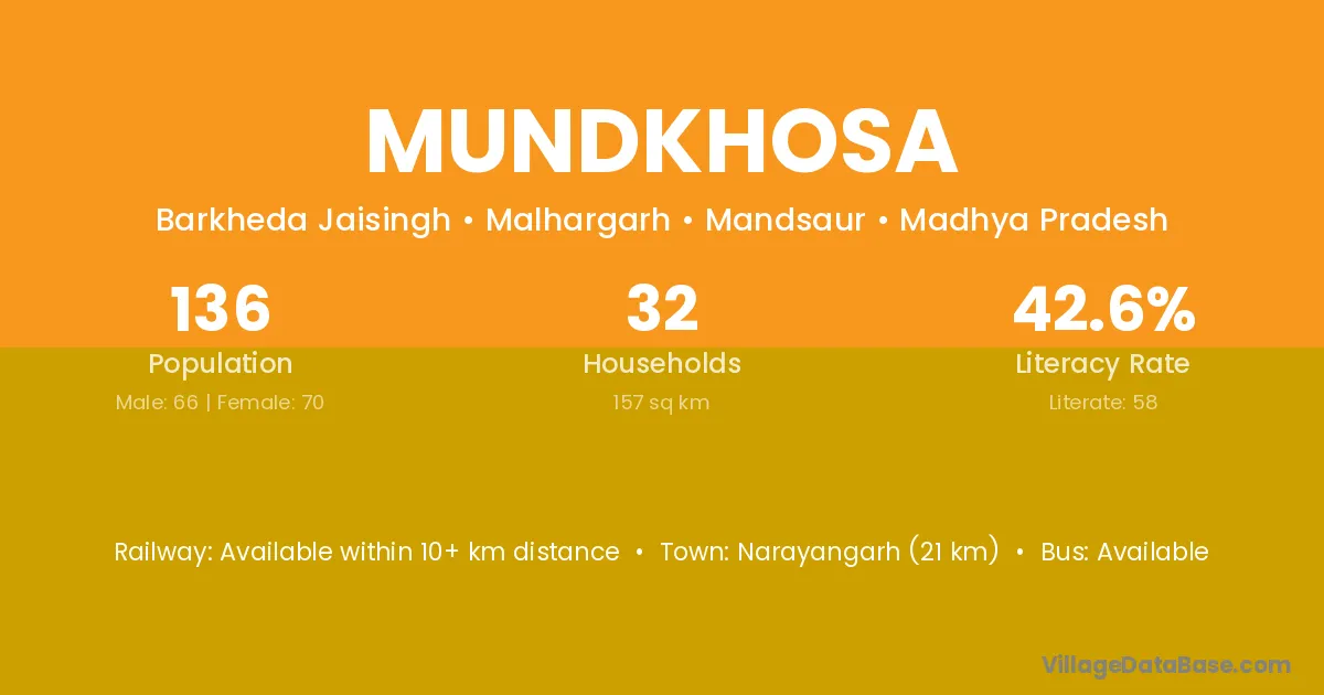 Mundkhosa village has a total population of 136 people, of which 66 are males and 70 are females.
