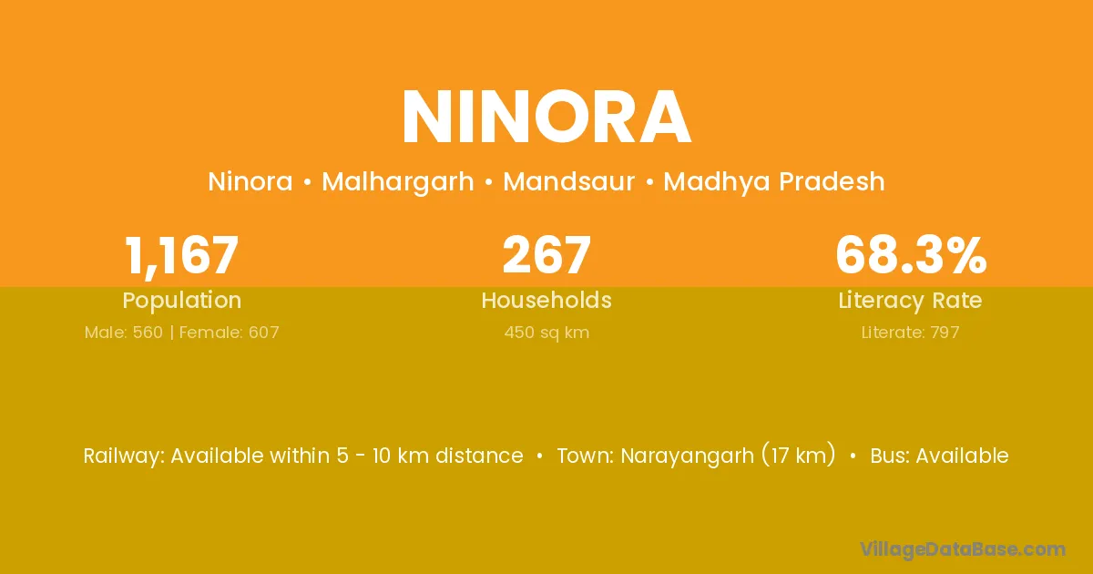 Narayangarh (17 km) is the nearest town to Ninora village for major economic activities and is located approximately 17 km away.