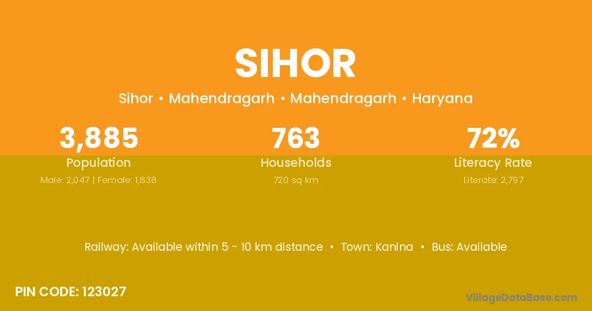 The literacy rate of Sihor village is 61.47%. Male literacy stands at 75.55% and female literacy at 46.57%.