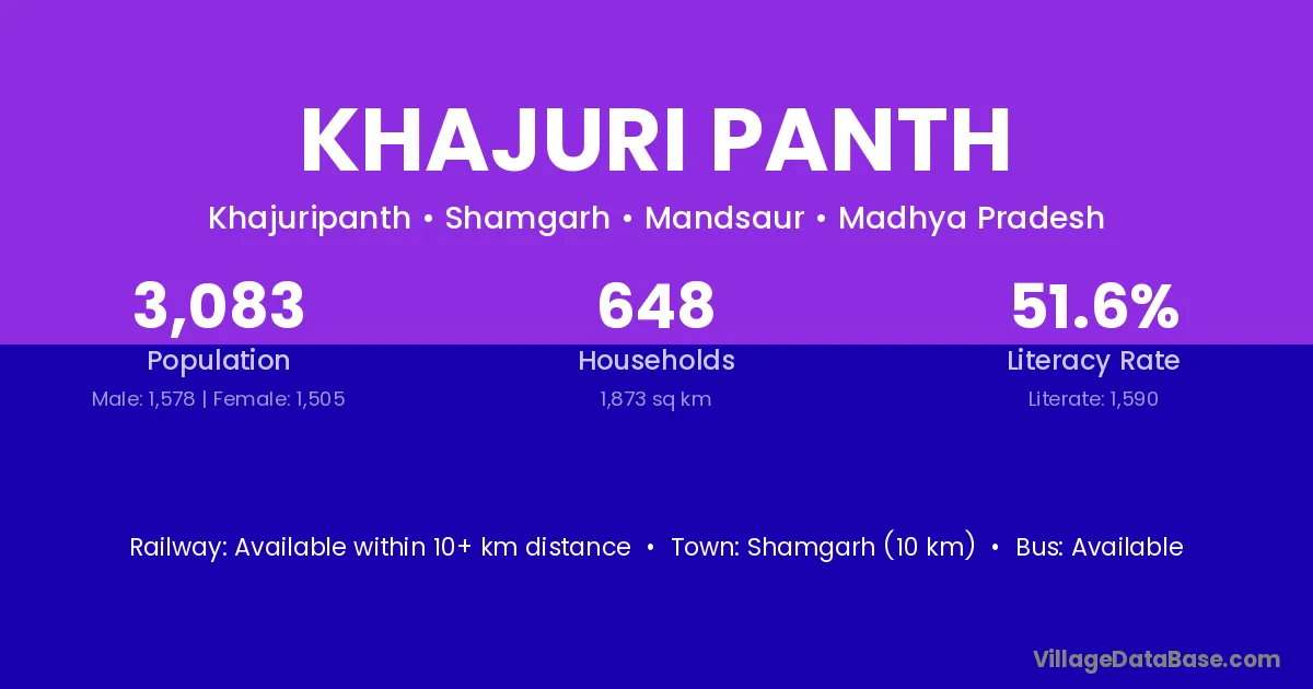 Shamgarh (10 km) is the nearest town to Khajuri Panth village for major economic activities and is located approximately 10 km away.