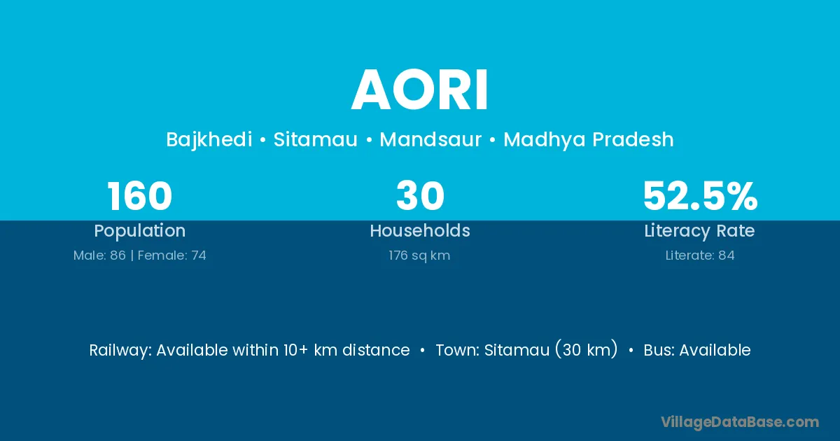 Sitamau (30 km) is the nearest town to Aori village for major economic activities and is located approximately 30 km away.