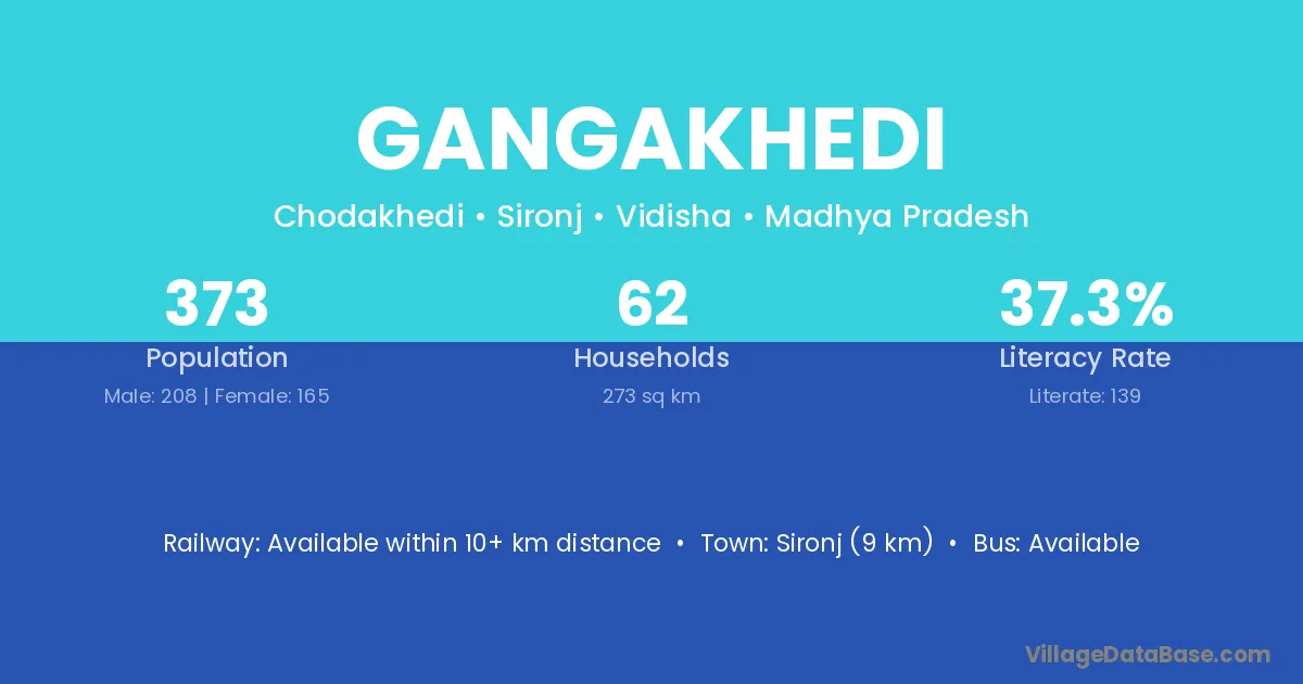 Sitamau (10 km) is the nearest town to Gangakhedi village for major economic activities and is located approximately 10 km away.