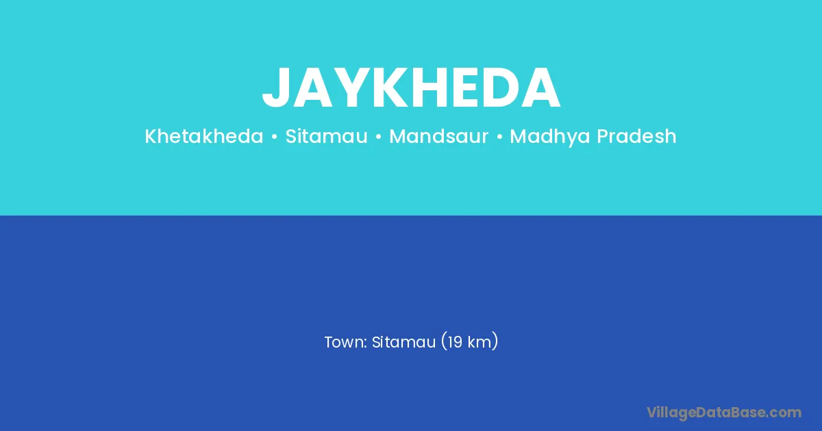 Sitamau (19 km) is the nearest town to Jaykheda village for major economic activities and is located approximately 19 km away.