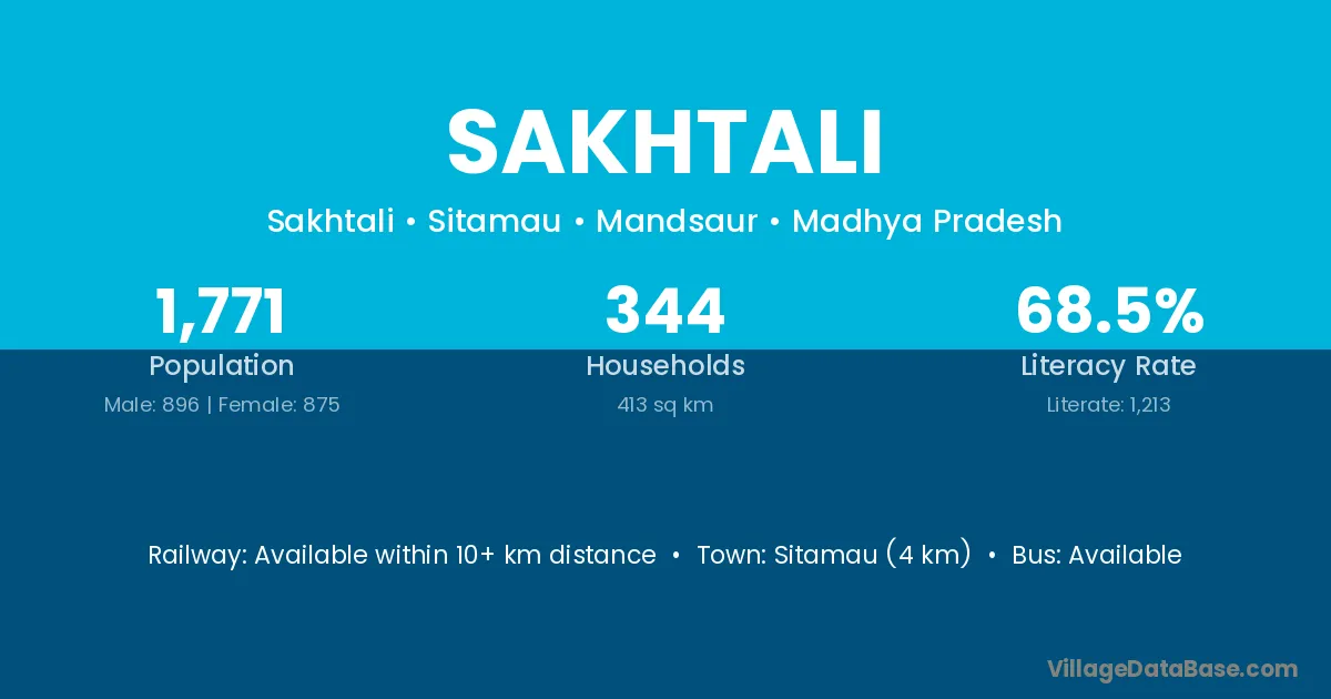 Sitamau (4 km) is the nearest town to Sakhtali village for major economic activities and is located approximately 4 km away.
