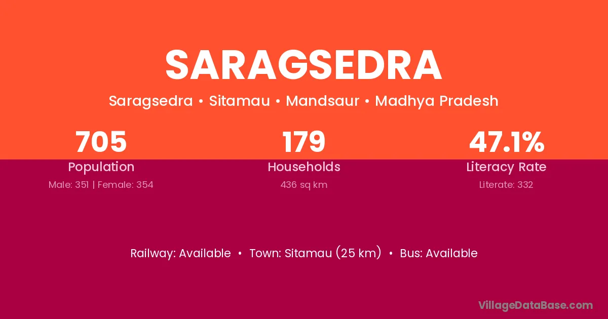Sitamau (25 km) is the nearest town to Saragsedra village for major economic activities and is located approximately 25 km away.