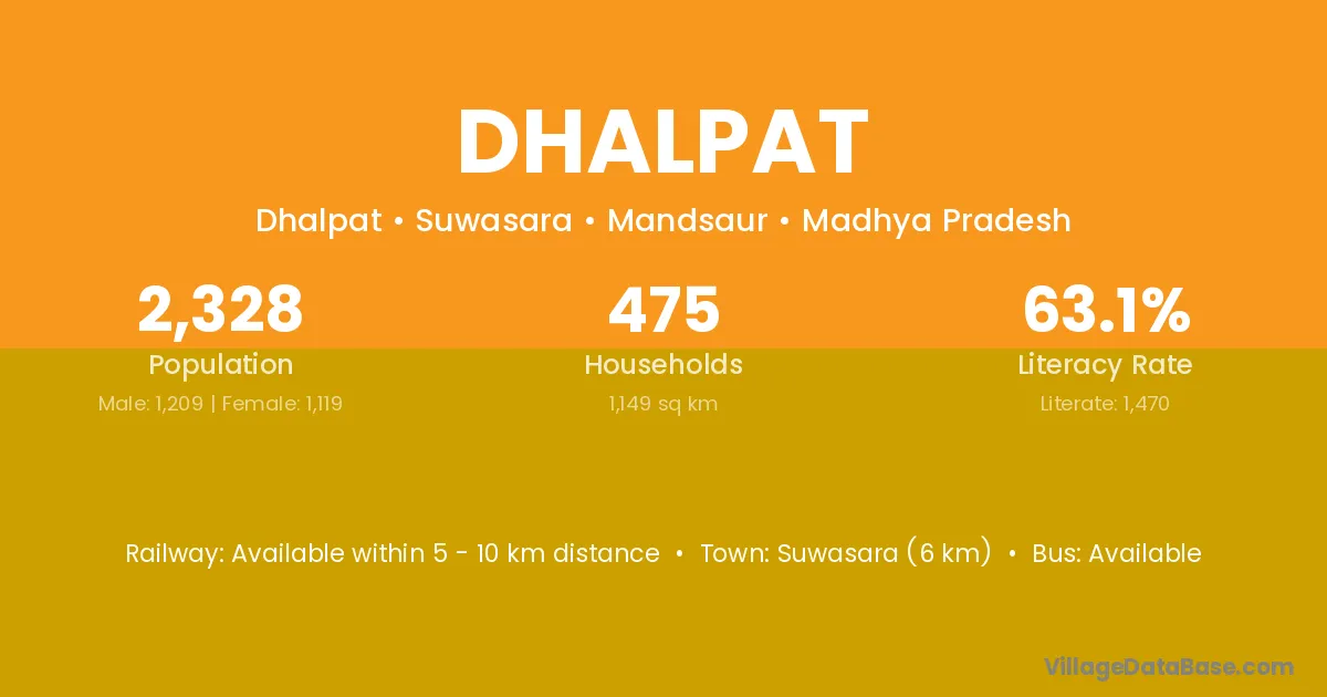 Suwasara (6 km) is the nearest town to Dhalpat village for major economic activities and is located approximately 6 km away.