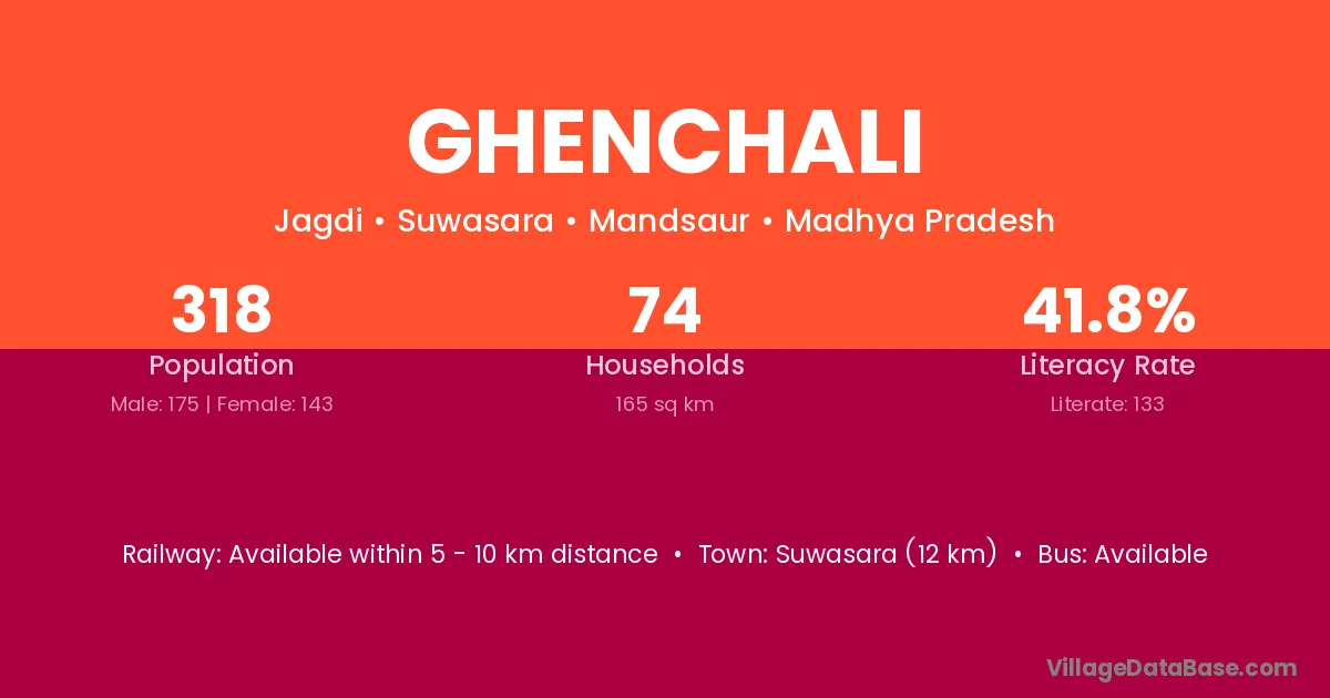 Suwasara (12 km) is the nearest town to Ghenchali village for major economic activities and is located approximately 12 km away.
