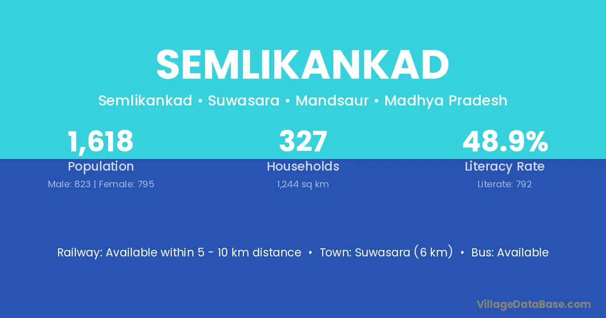 Suwasara (6 km) is the nearest town to Semlikankad village for major economic activities and is located approximately 6 km away.