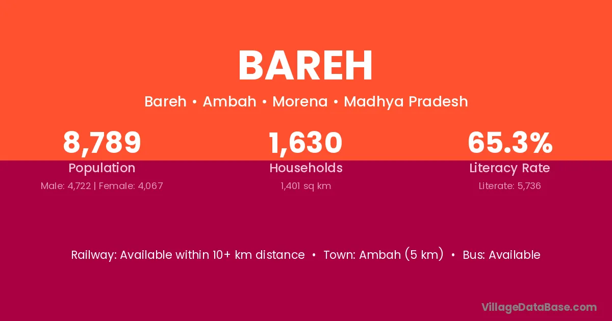 Bareh village is located in the Ambah Tehsil of the Morena district in Madhya Pradesh .
