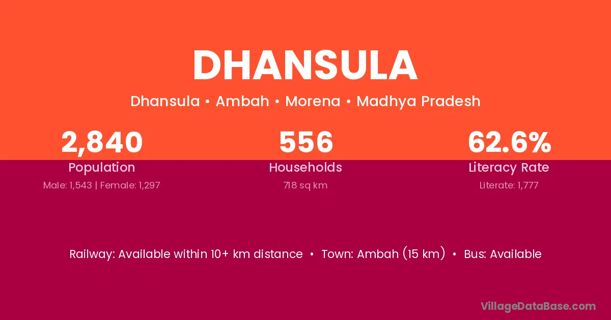 Ambah (15 km) is the nearest town to Dhansula village for major economic activities and is located approximately 15 km away.
