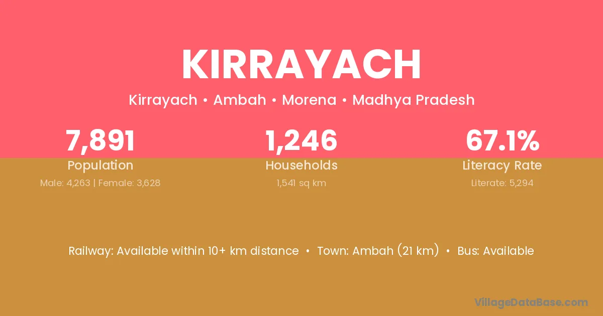 Kirrayach village has a total population of 7,891 people, of which 4,263 are males and 3,628 are females.