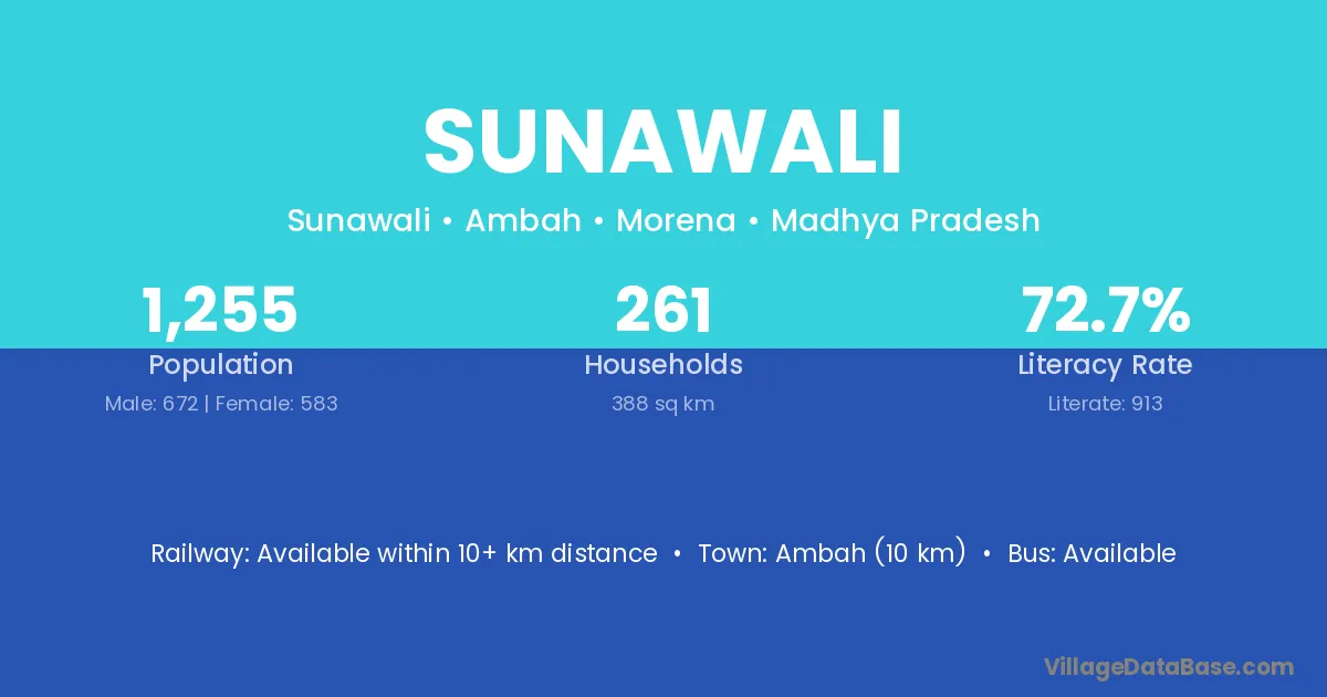 Sunawali village has a total population of 1,255 people, of which 672 are males and 583 are females.