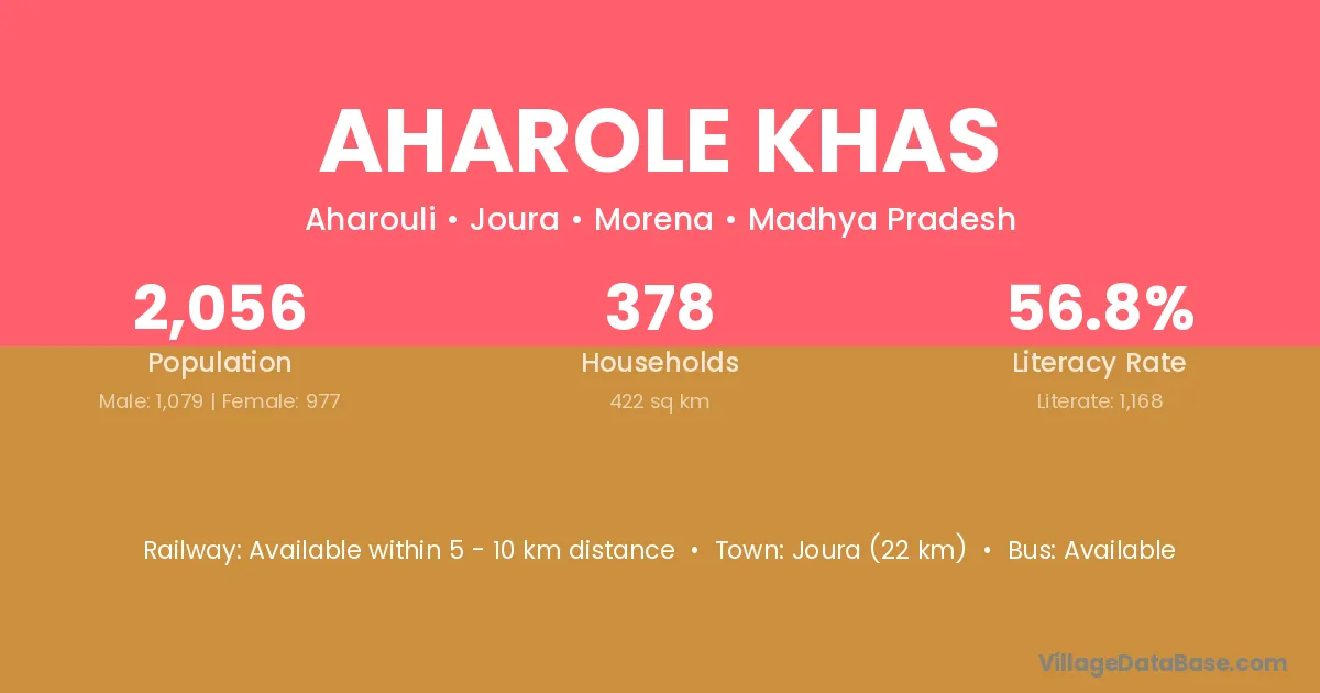 Joura (22 km) is the nearest town to Aharole Khas village for major economic activities and is located approximately 22 km away.