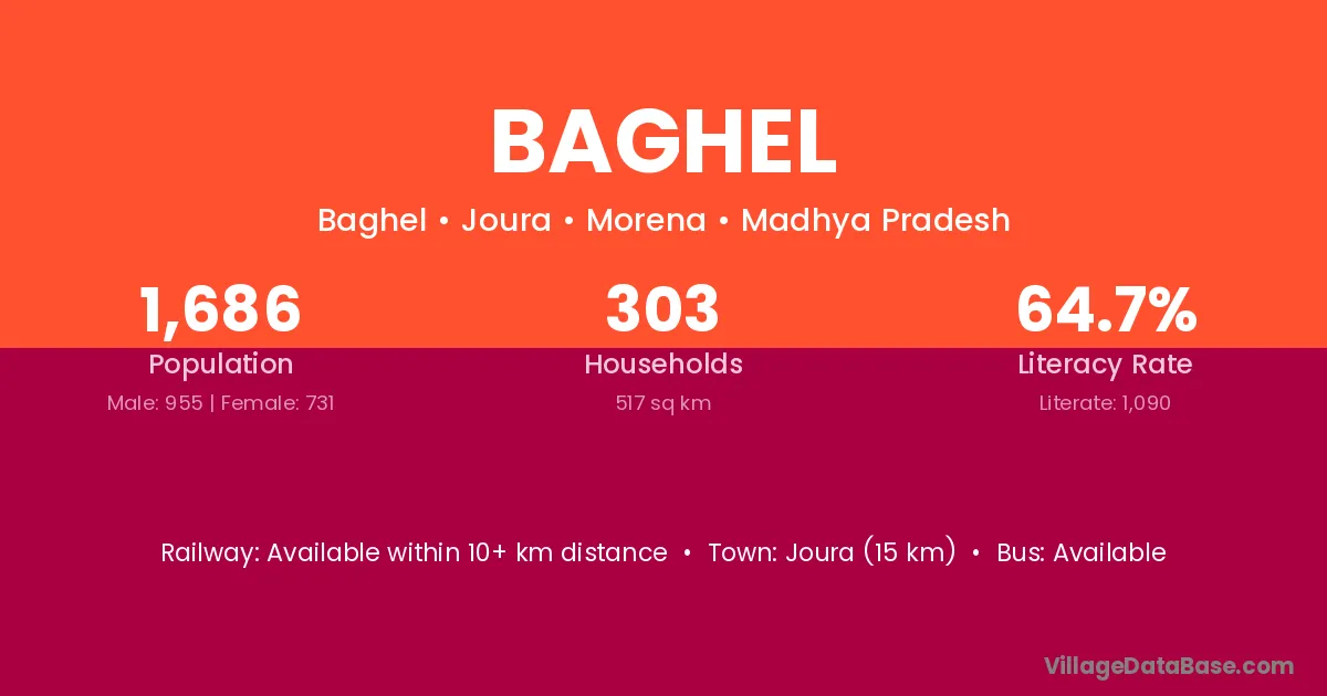 Joura (15 km) is the nearest town to Baghel village for major economic activities and is located approximately 15 km away.