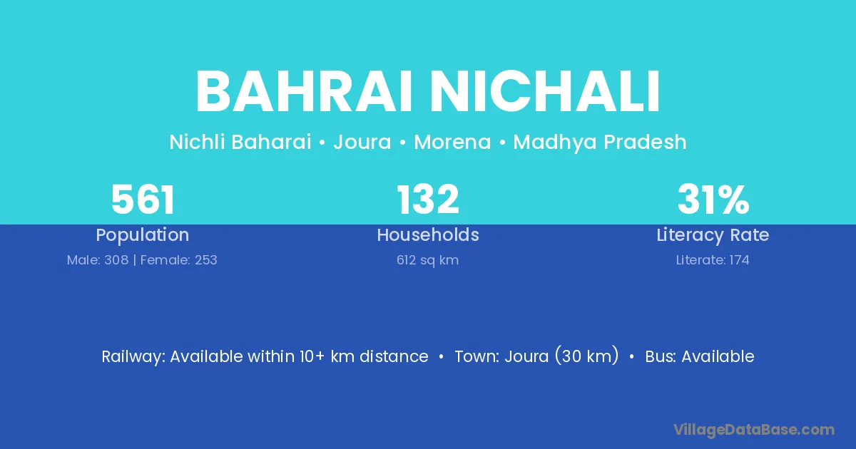 Bahrai Nichali village has a total population of 561 people, of which 308 are males and 253 are females.