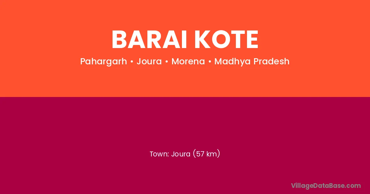 Joura (57 km) is the nearest town to Barai Kote village for major economic activities and is located approximately 57 km away.