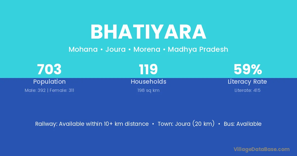 Bhatiyara village has a total population of 703 people, of which 392 are males and 311 are females.