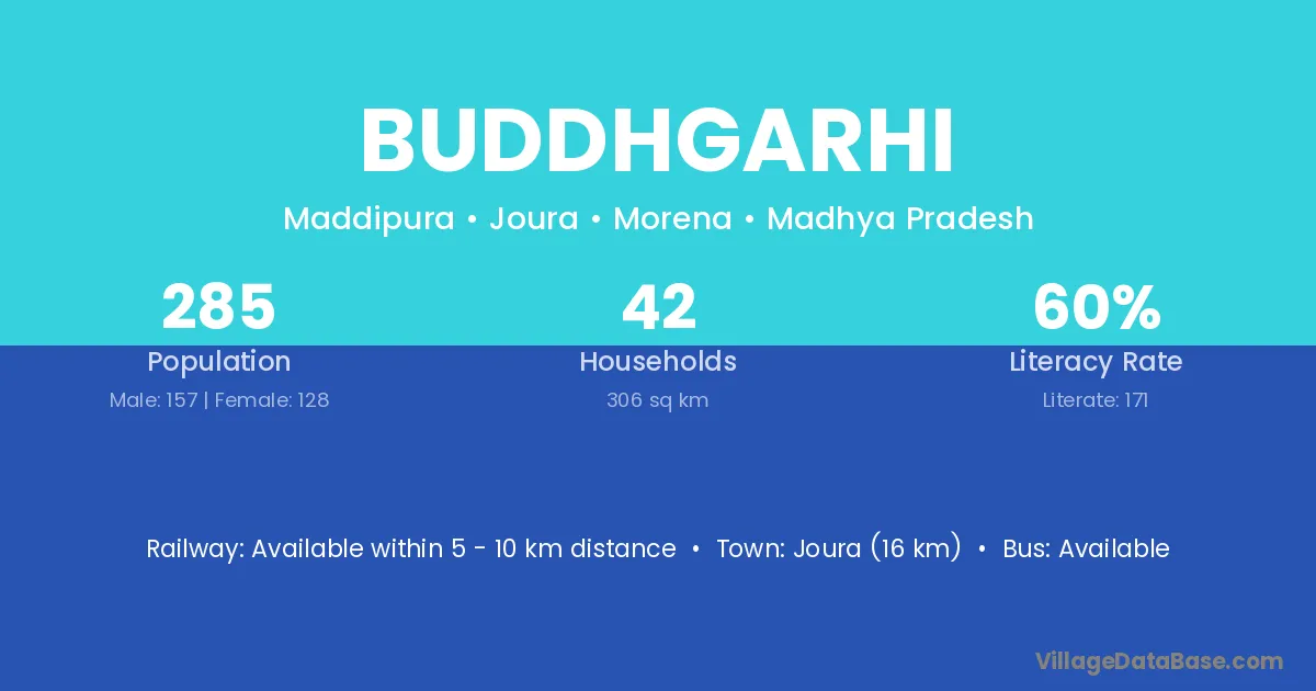 Joura (16 km) is the nearest town to Buddhgarhi village for major economic activities and is located approximately 16 km away.