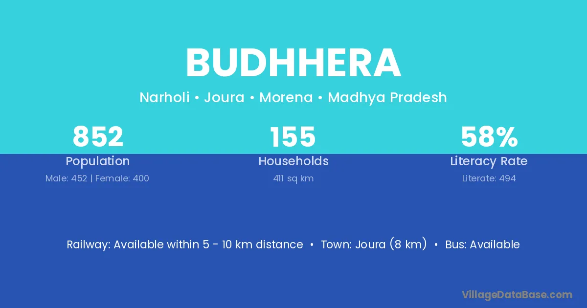Joura (8 km) is the nearest town to Budhhera village for major economic activities and is located approximately 8 km away.