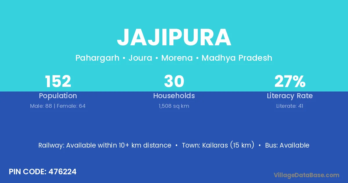 Kailaras (15 km) is the nearest town to Jajipura village for major economic activities and is located approximately 15 km away.