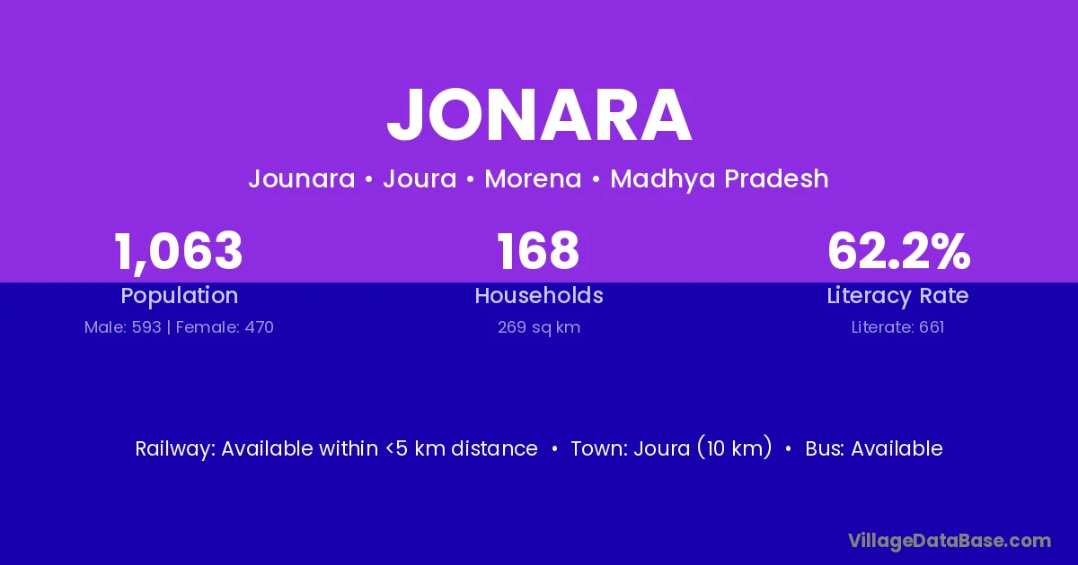 Joura (10 km) is the nearest town to Jonara village for major economic activities and is located approximately 10 km away.