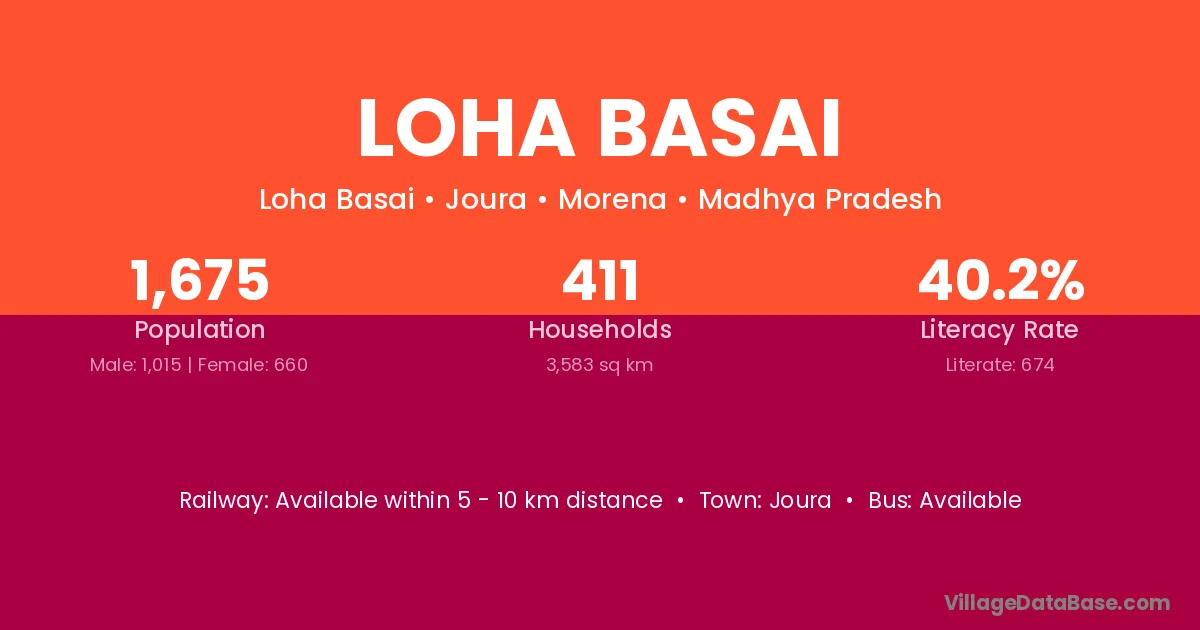 Loha Basai village has a total population of 1,675 people, of which 1,015 are males and 660 are females.