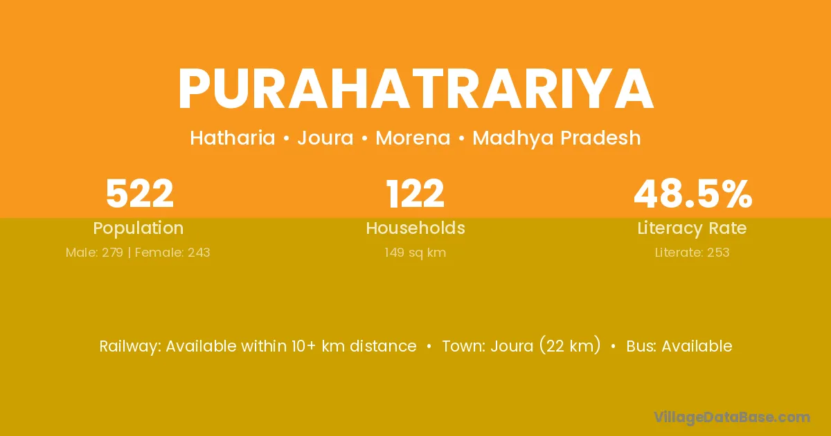 Joura (22 km) is the nearest town to Purahatrariya village for major economic activities and is located approximately 22 km away.