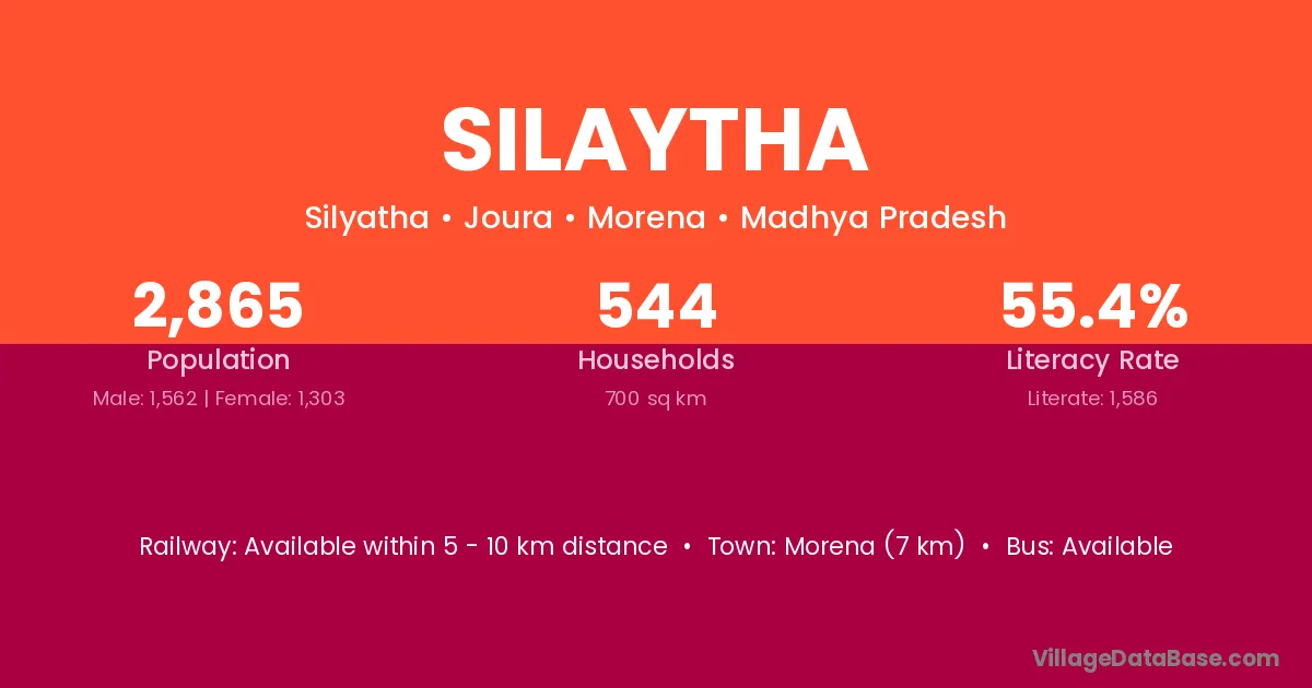 Morena (7 km) is the nearest town to Silaytha village for major economic activities and is located approximately 7 km away.