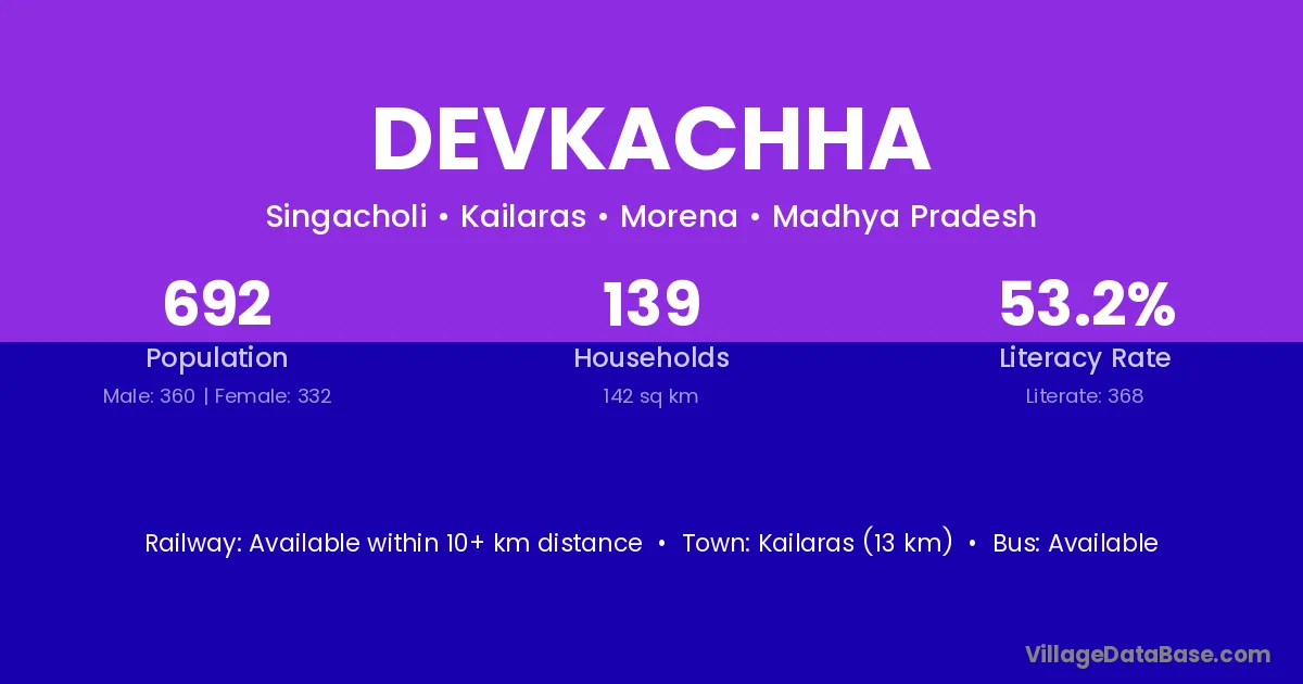Devkachha village has a total population of 692 people, of which 360 are males and 332 are females.