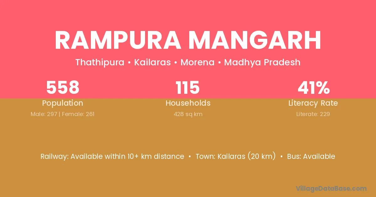 Rampura Mangarh village has a total population of 558 people, of which 297 are males and 261 are females.