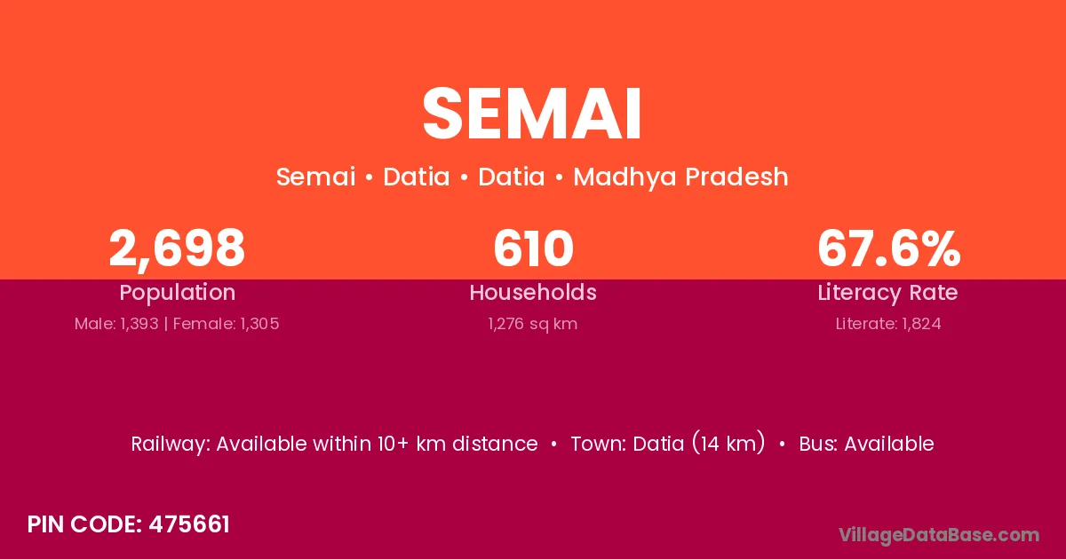 Kailaras (10 km) is the nearest town to Semai village for major economic activities and is located approximately 10 km away.