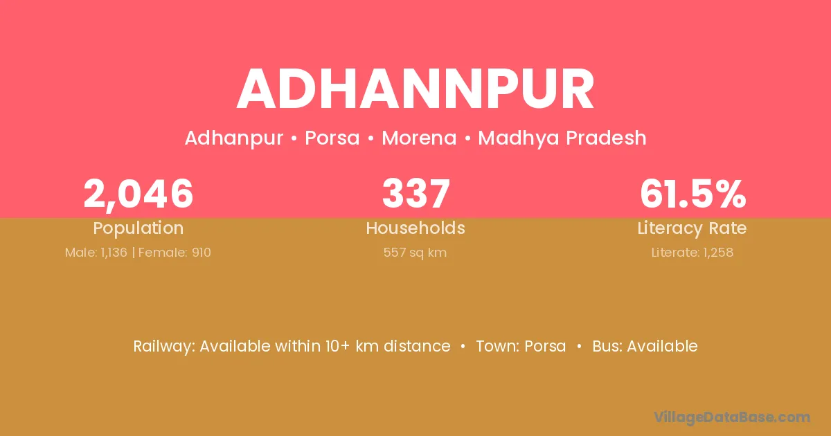 Porsa is the nearest town to Adhannpur village for major economic activities