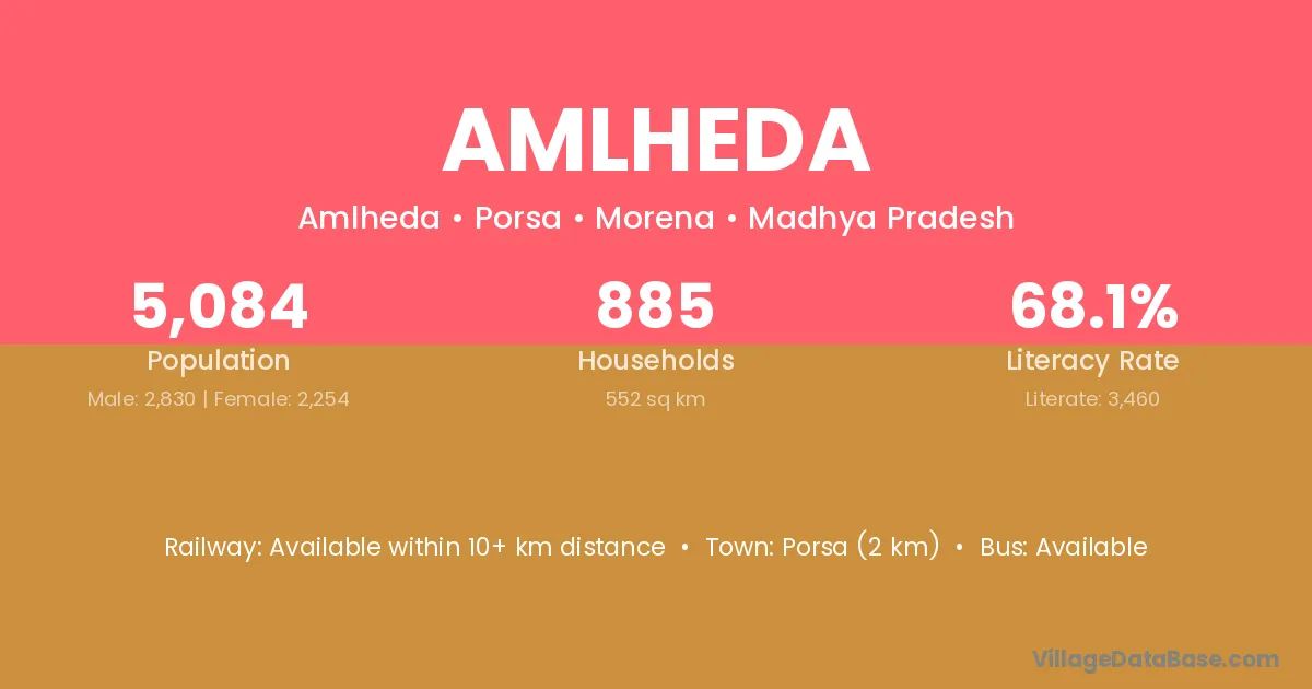 Porsa (2 km) is the nearest town to Amlheda village for major economic activities and is located approximately 2 km away.