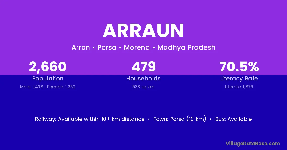 Porsa (10 km) is the nearest town to Arraun village for major economic activities and is located approximately 10 km away.
