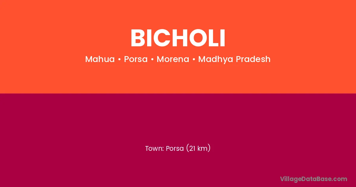 Porsa (21 km) is the nearest town to Bicholi village for major economic activities and is located approximately 21 km away.