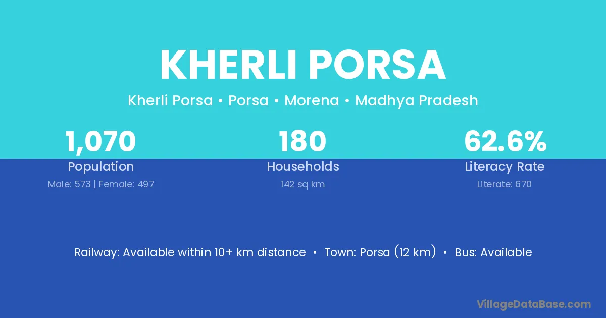 Porsa (12 km) is the nearest town to Kherli Porsa village for major economic activities and is located approximately 12 km away.