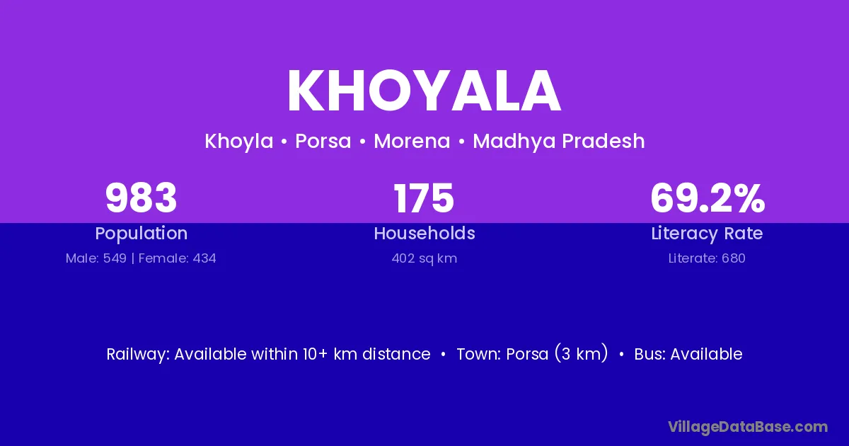 Porsa (3 km) is the nearest town to Khoyala village for major economic activities and is located approximately 3 km away.