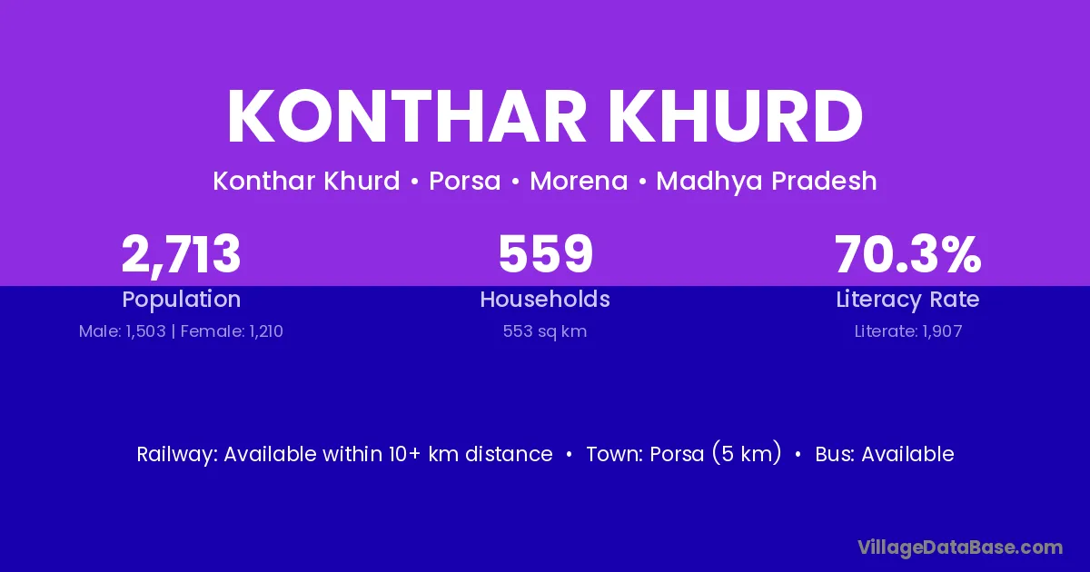 Porsa (5 km) is the nearest town to Konthar Khurd village for major economic activities and is located approximately 5 km away.
