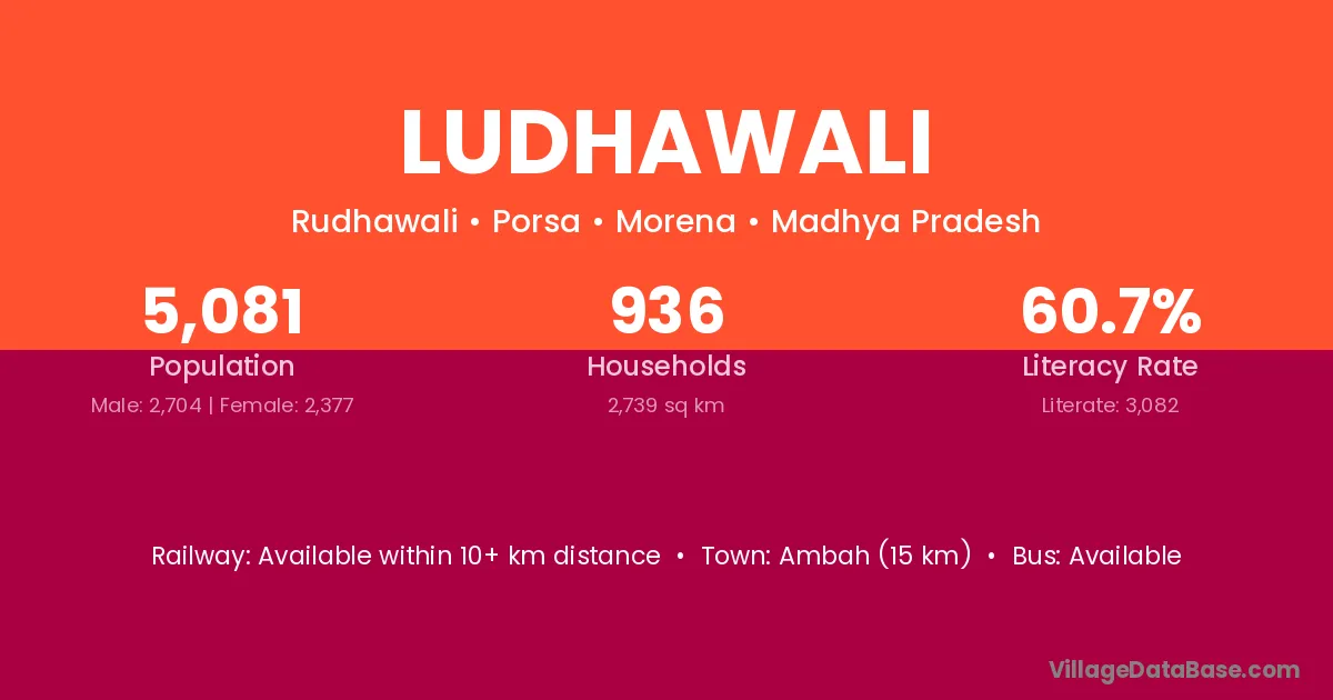 Ambah (15 km) is the nearest town to Ludhawali village for major economic activities and is located approximately 15 km away.