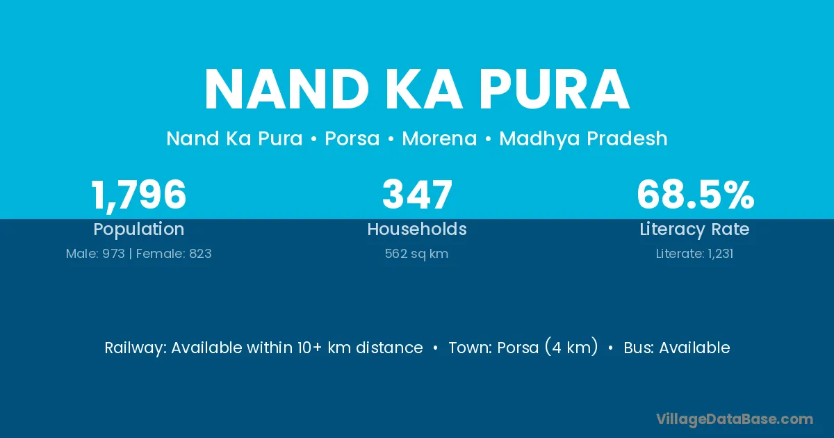 Porsa (4 km) is the nearest town to Nand Ka Pura village for major economic activities and is located approximately 4 km away.