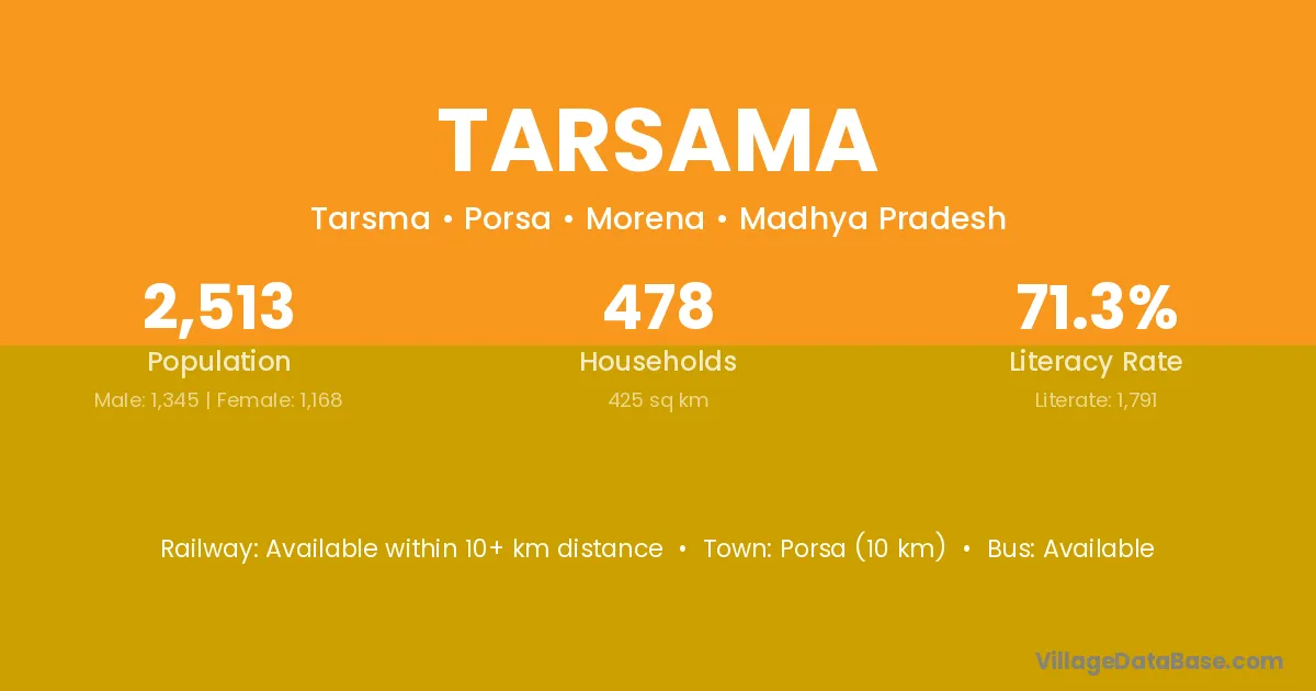 Porsa (10 km) is the nearest town to Tarsama village for major economic activities and is located approximately 10 km away.