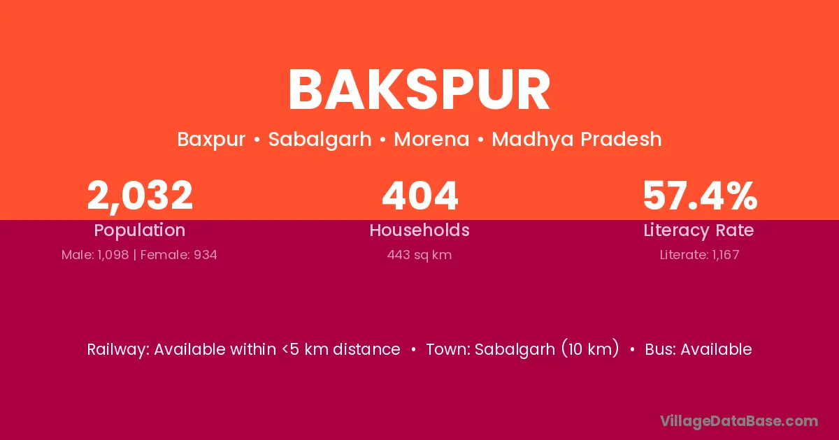Sabalgarh (10 km) is the nearest town to Bakspur village for major economic activities and is located approximately 10 km away.