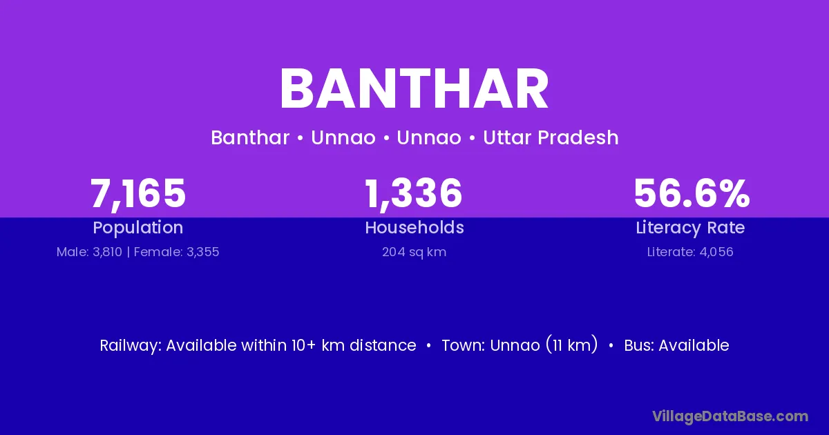 Sabalgarh (35 km) is the nearest town to Banthar village for major economic activities and is located approximately 35 km away.