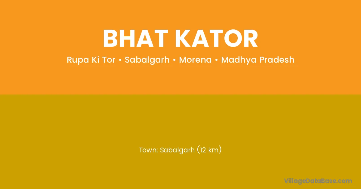 Sabalgarh (12 km) is the nearest town to Bhat Kator village for major economic activities and is located approximately 12 km away.