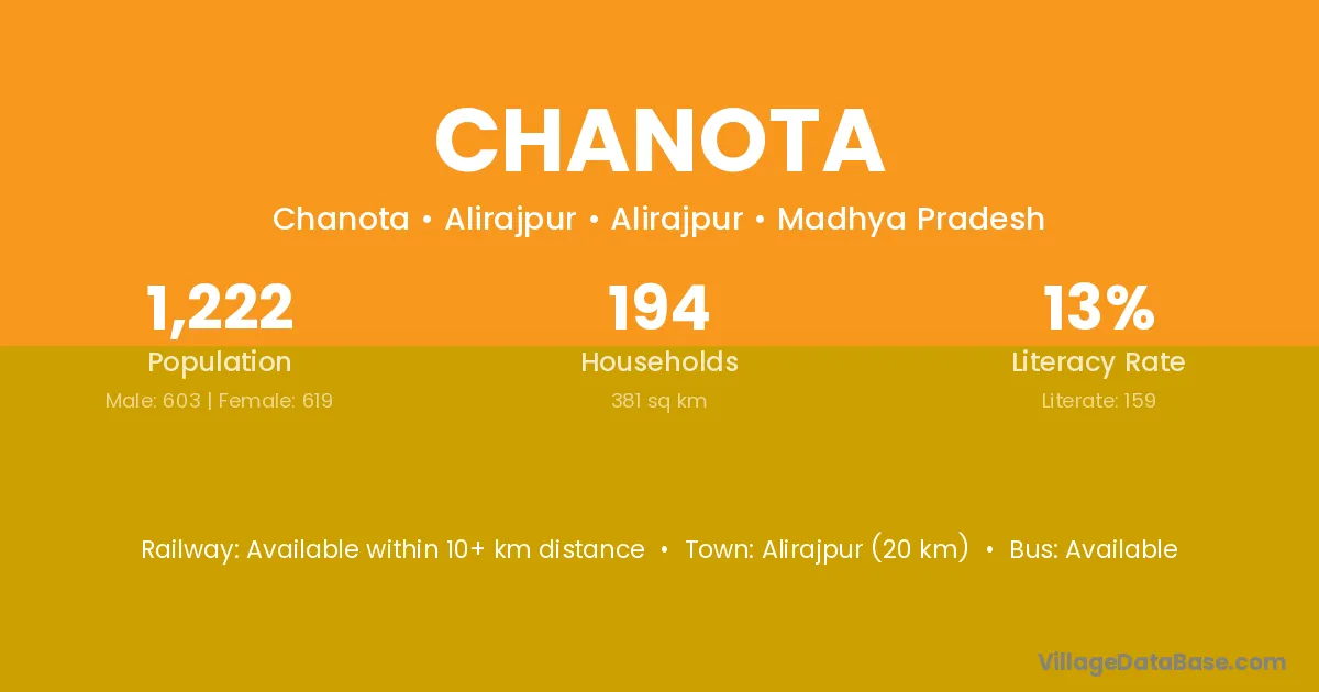 Sabalgarh (15 km) is the nearest town to Chanota village for major economic activities and is located approximately 15 km away.