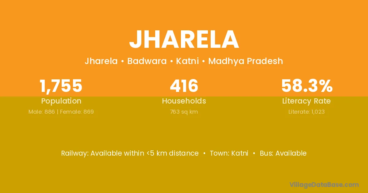 According to Census 2011 information, the village code of Jharela village is 476229.