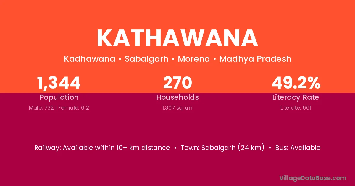Sabalgarh (24 km) is the nearest town to Kathawana village for major economic activities and is located approximately 24 km away.