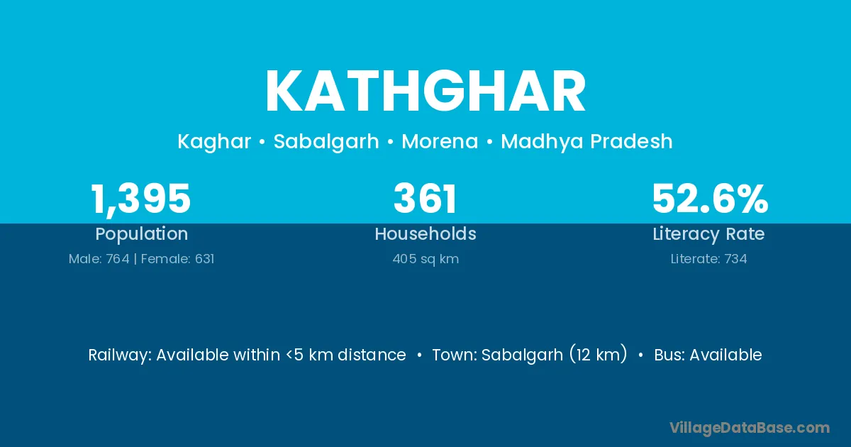 Sabalgarh (12 km) is the nearest town to Kathghar village for major economic activities and is located approximately 12 km away.