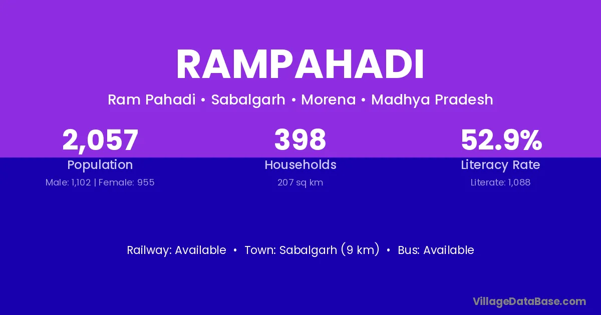 Sabalgarh (9 km) is the nearest town to Rampahadi village for major economic activities and is located approximately 9 km away.