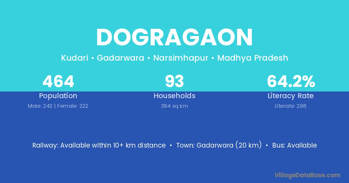 Gadarwara (20 km) is the nearest town to Dogragaon village for major economic activities and is located approximately 20 km away.